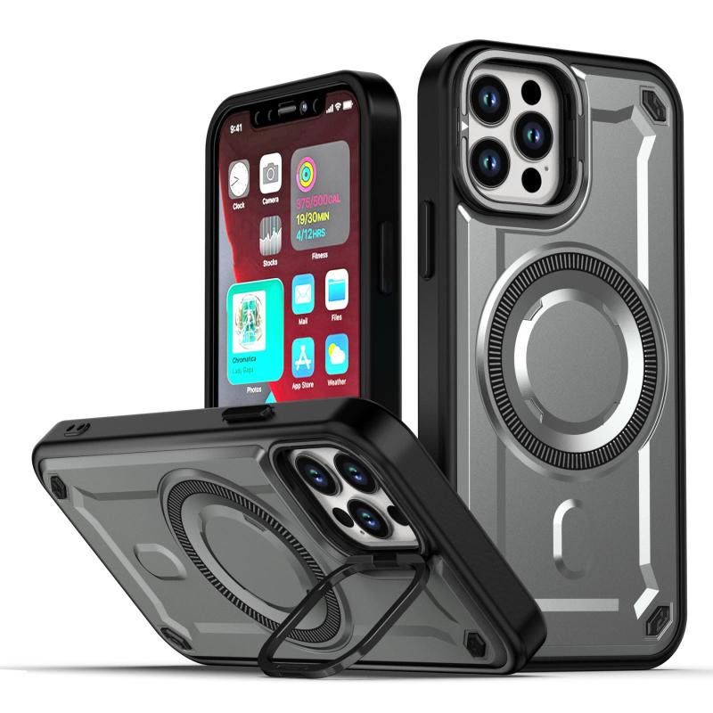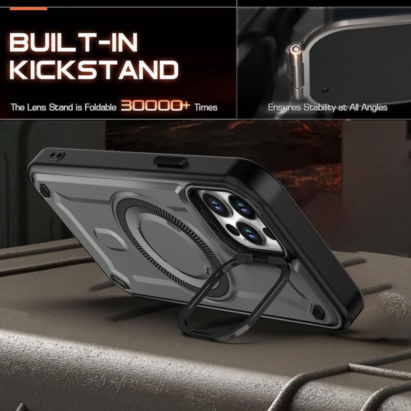 For iPhone 12 / 12 Pro MagSafe PC Phone Case with Lens Holder(Grey)