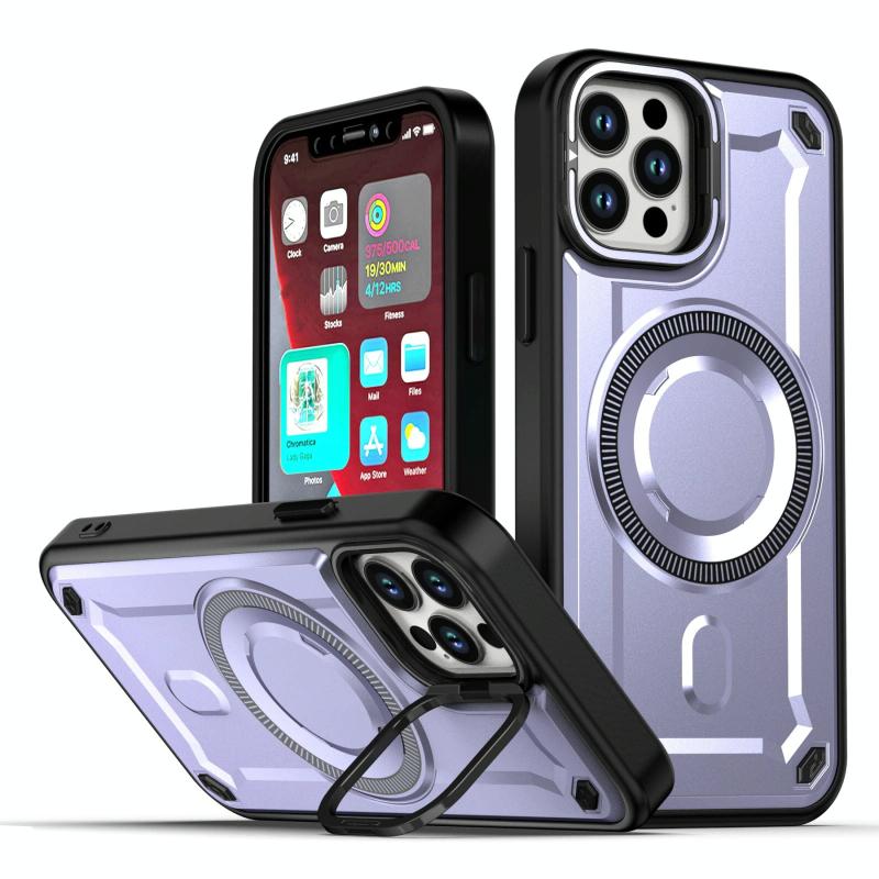 For iPhone 12 / 12 Pro MagSafe PC Phone Case with Lens Holder(Purple)