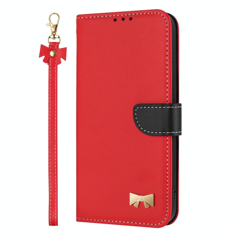 For iPhone 12 / 12 Pro Metal Bow Leather Phone Case with Hand Strap(Red)