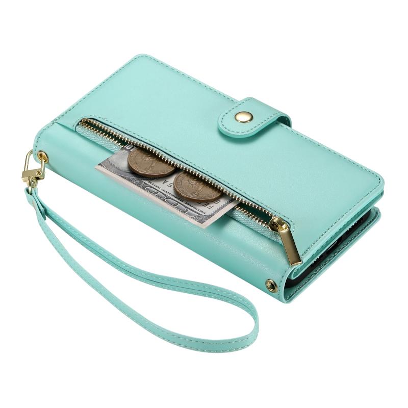 For iPhone 12 / 12 Pro Nine Card-slot Zipper Wallet Bag Leather Phone Case(Mint Green)