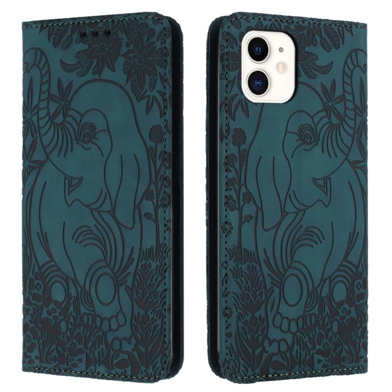 For iPhone 12 / 12 Pro Retro Elephant Embossed Leather Phone Case(Green)