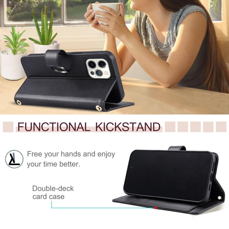 For iPhone 12 / 12 Pro Ring Buckle Rhombic Leather Phone Case(Black)