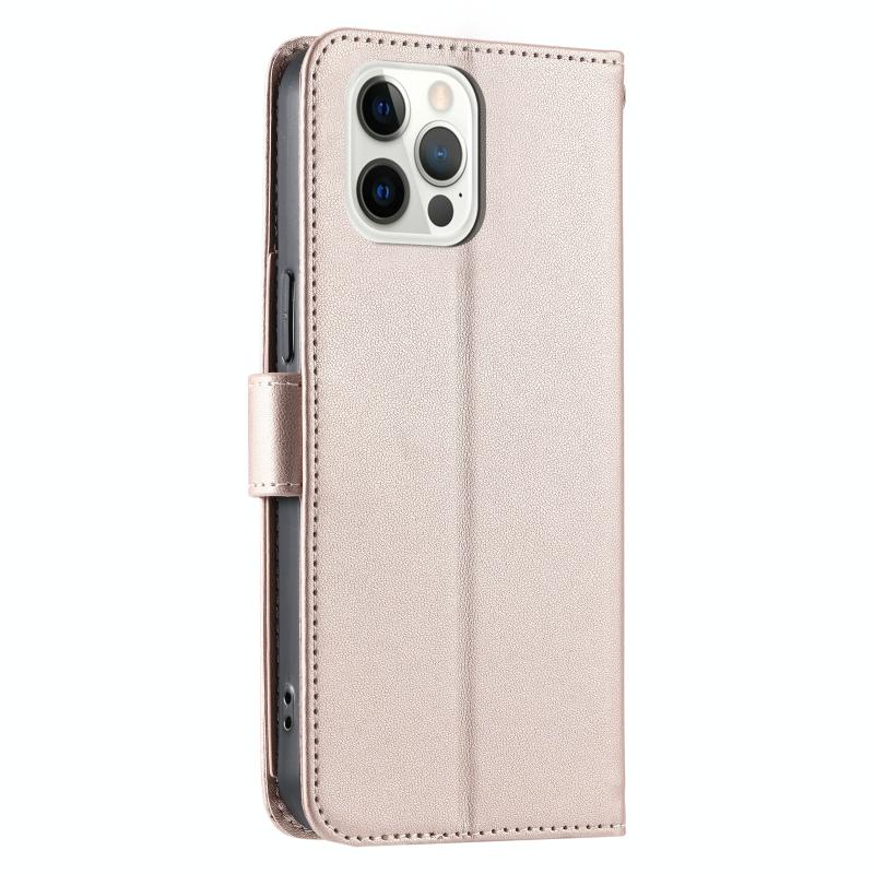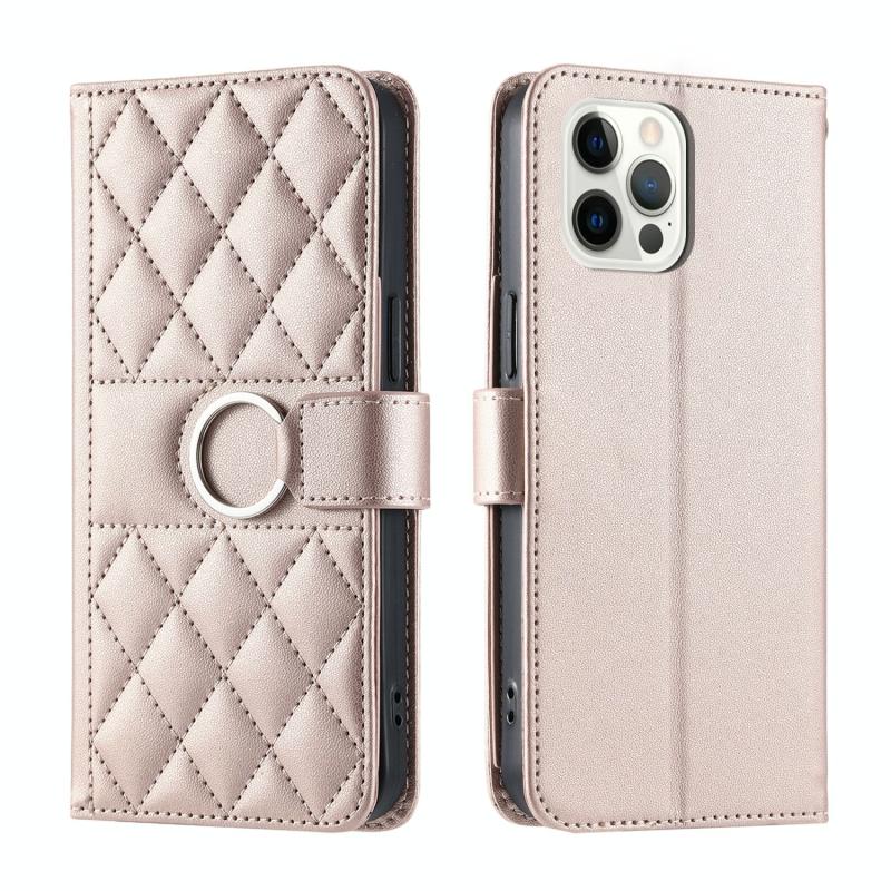 For iPhone 12 / 12 Pro Ring Buckle Rhombic Leather Phone Case(Rose Gold)