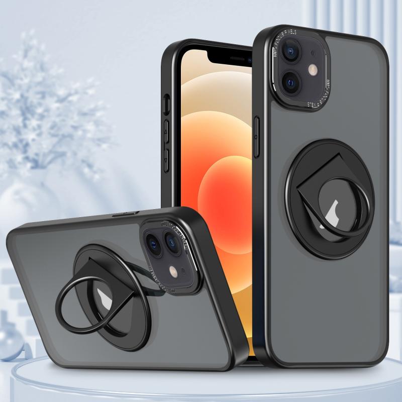 For iPhone 12 / 12 Pro Rotating Ring Magnetic Holder Phone Case(Black)