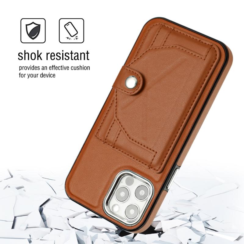 For iPhone 12 / 12 Pro Shockproof Leather Phone Case with Card Holder(Brown)