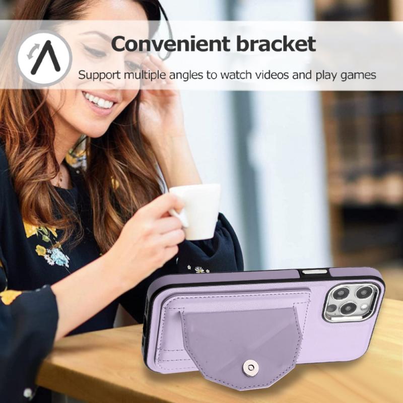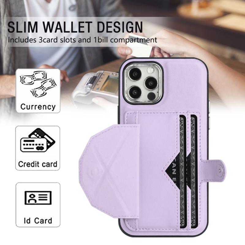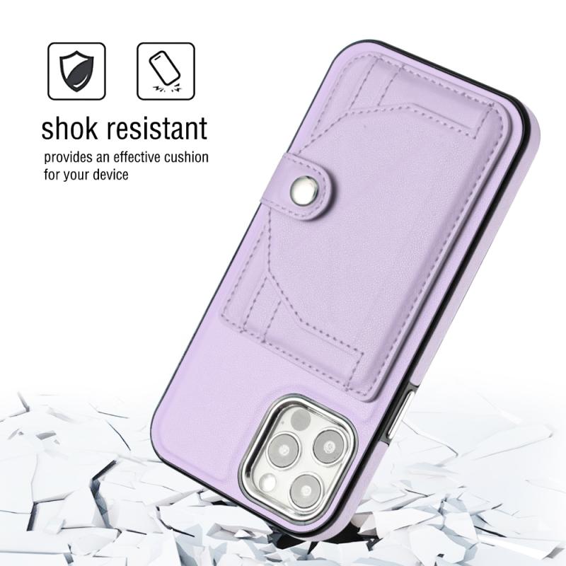 For iPhone 12 / 12 Pro Shockproof Leather Phone Case with Card Holder(Purple)