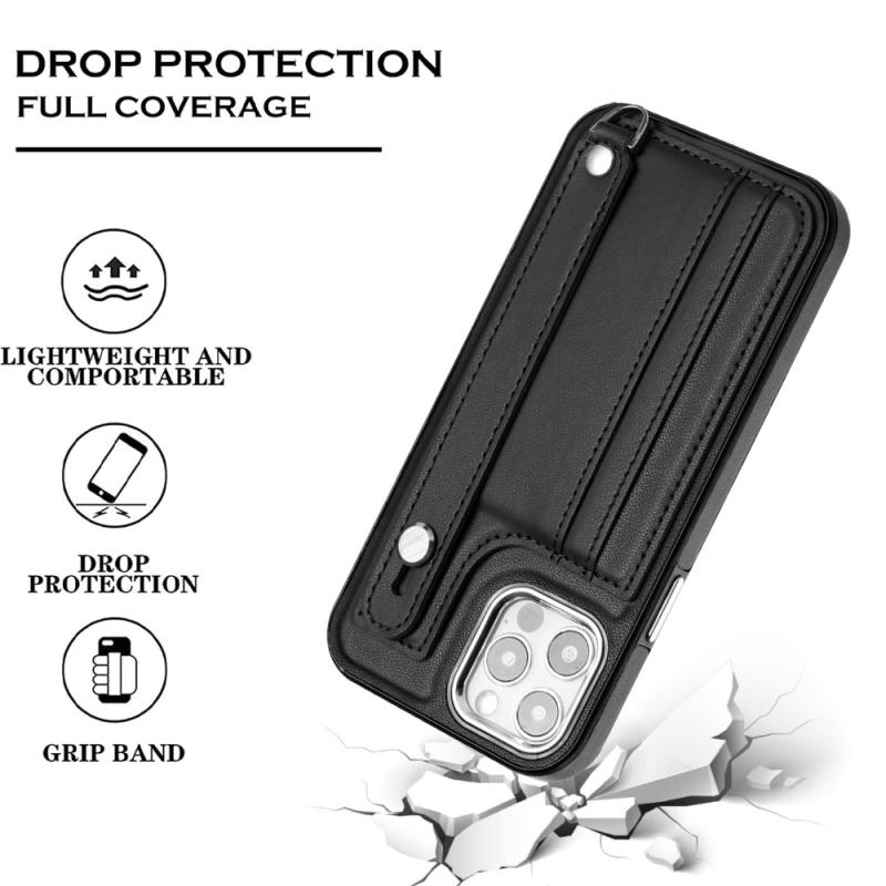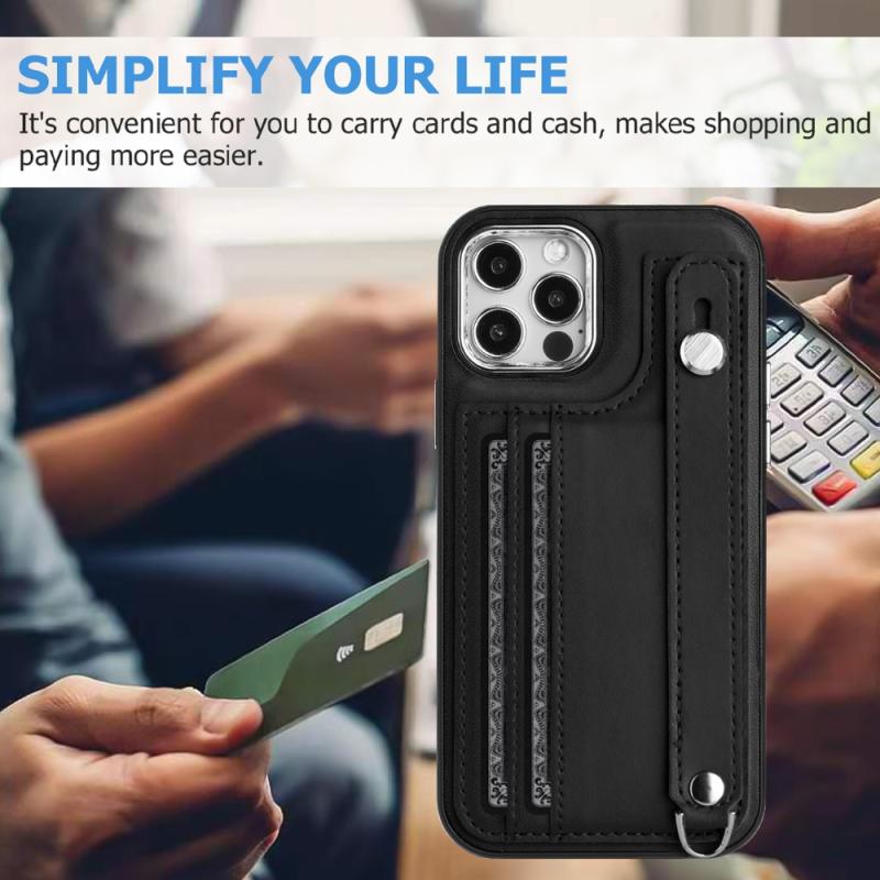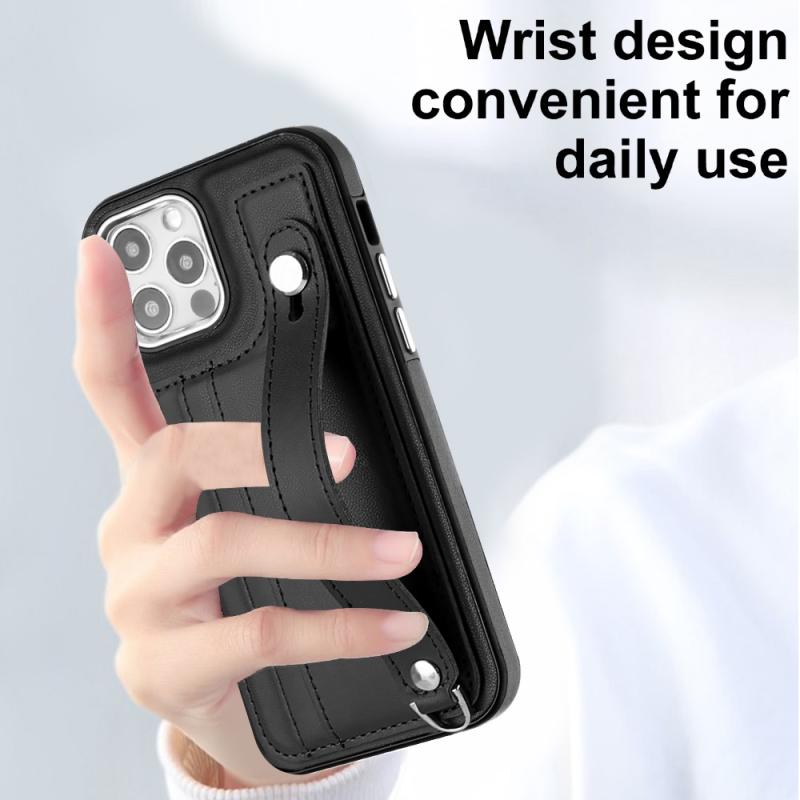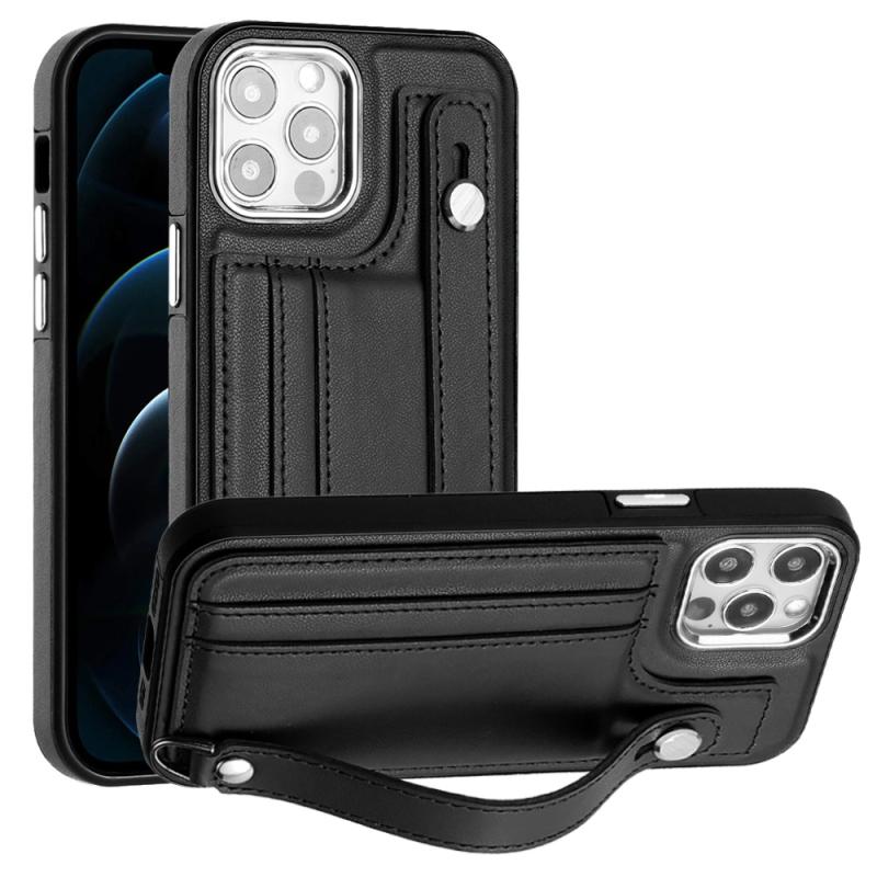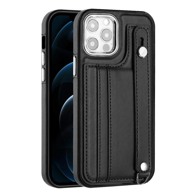 For iPhone 12 / 12 Pro Shockproof Leather Phone Case with Wrist Strap(Black)