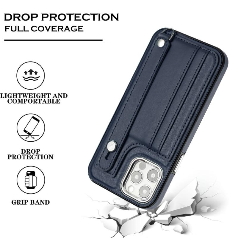For iPhone 12 / 12 Pro Shockproof Leather Phone Case with Wrist Strap(Blue)