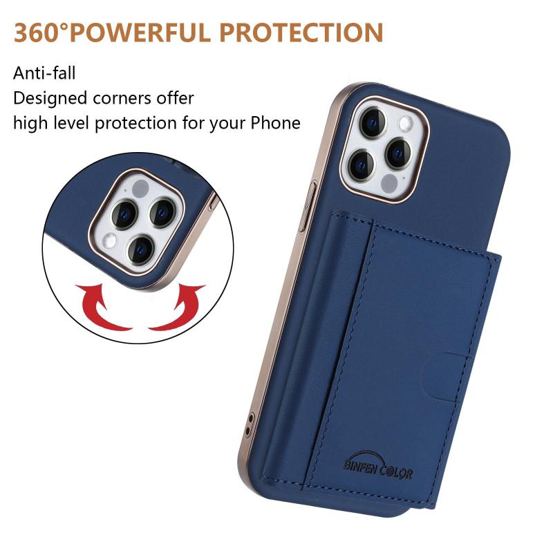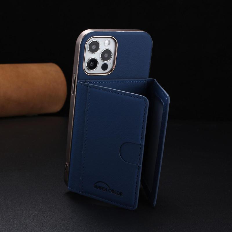 For iPhone 12 / 12 Pro Solid Color Horizontal Magnetic Card Bag RFID MagSafe Phone Case(Dark Blue)