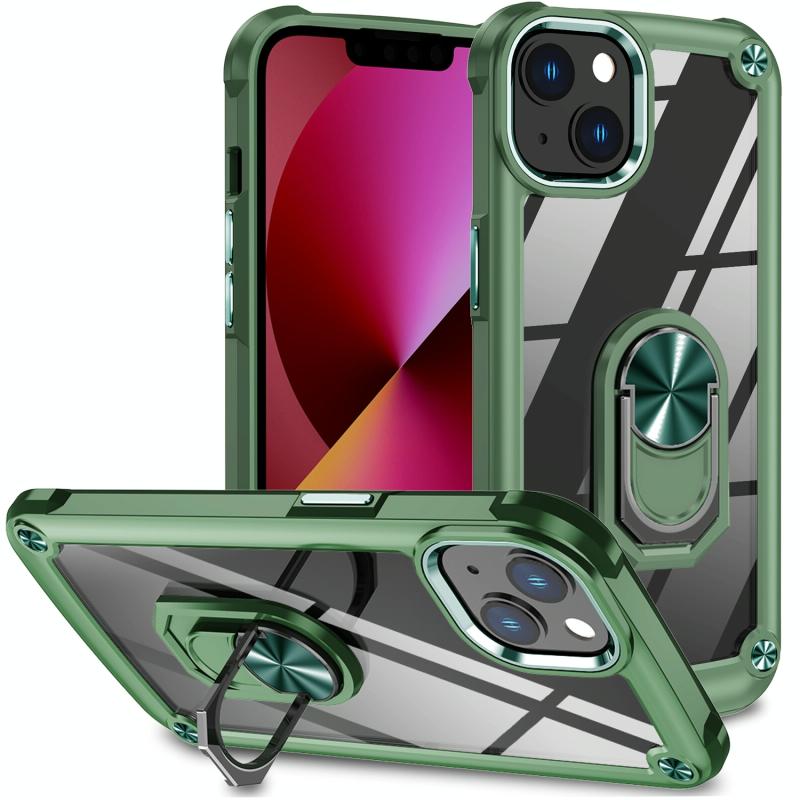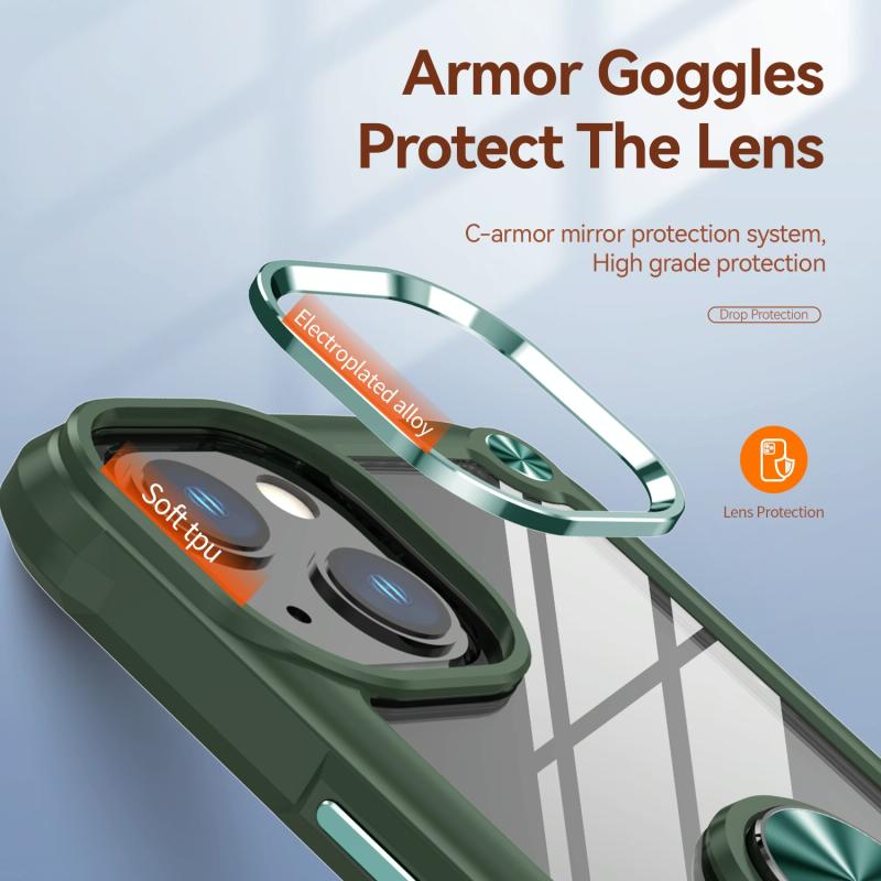 For iPhone 12 / 12 Pro TPU + PC Lens Protection Phone Case with Ring Holder(Green)