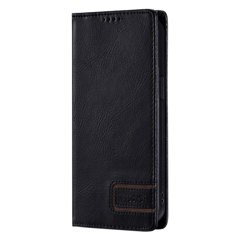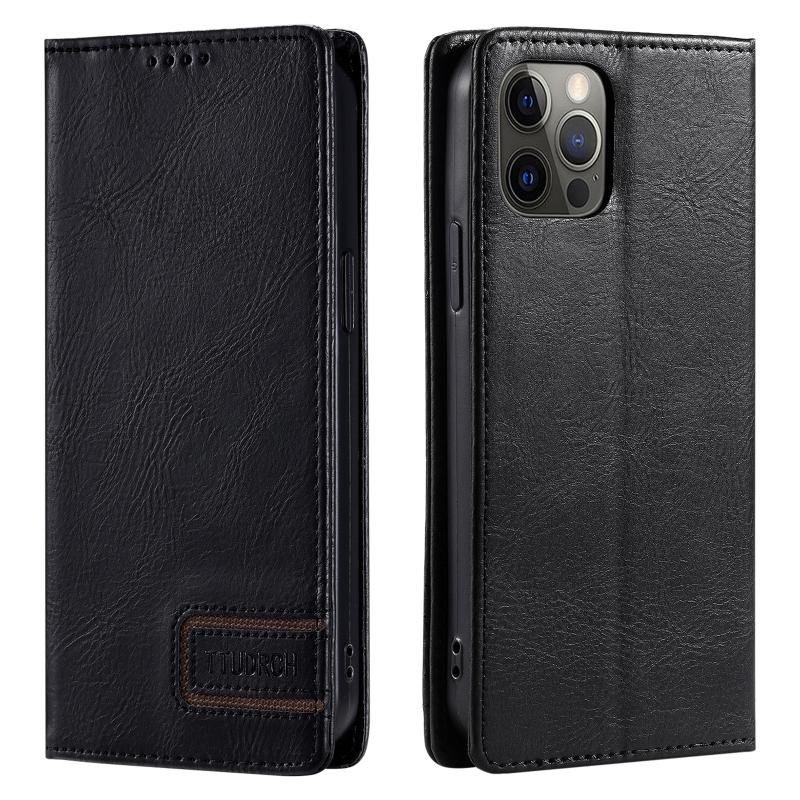 For iPhone 12 / 12 Pro TTUDRCH RFID Retro Texture Magnetic Leather Phone Case(Black)