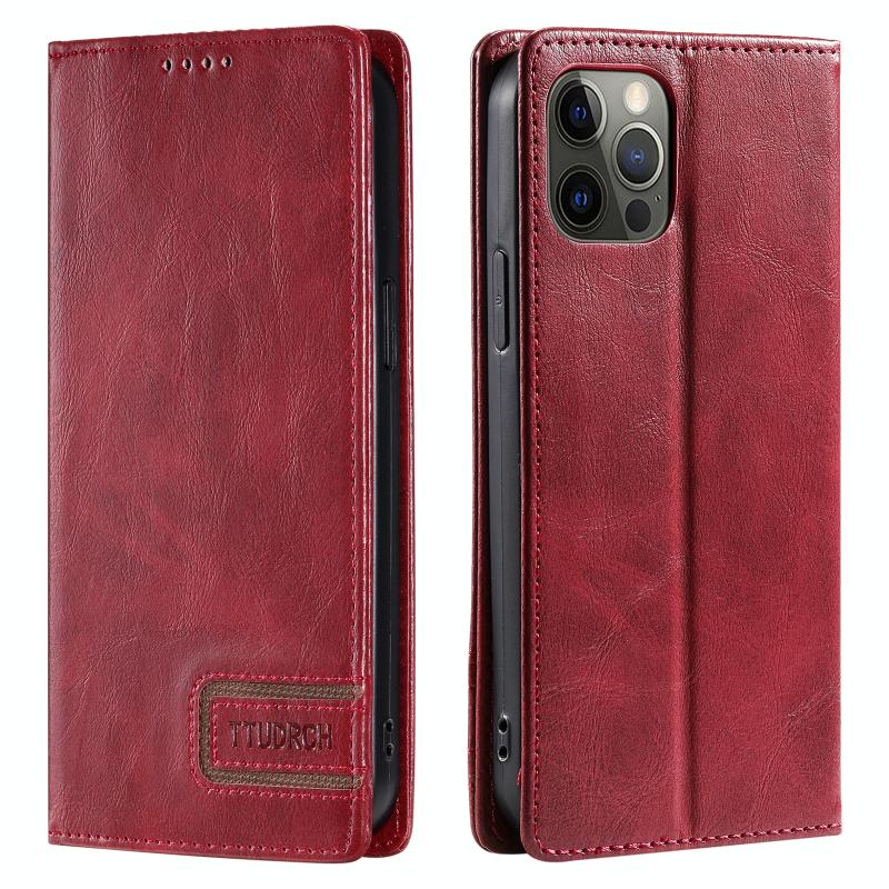 For iPhone 12 / 12 Pro TTUDRCH RFID Retro Texture Magnetic Leather Phone Case(Red)