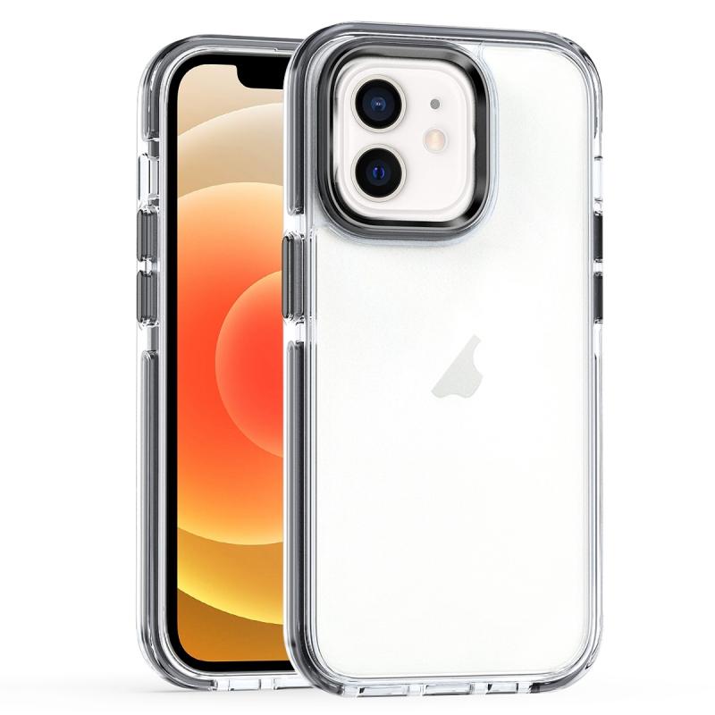 For iPhone 12 / 12 Pro Two-color TPU Transparent PC Phone Case(Black)