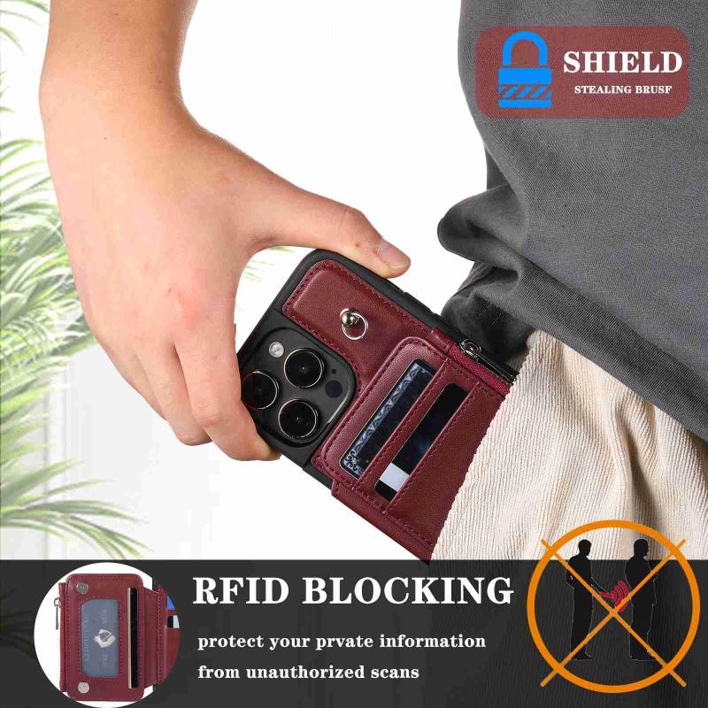 For iPhone 12 / 12 Pro Zipper Card Slots RFID Phone Case(Wine Red)