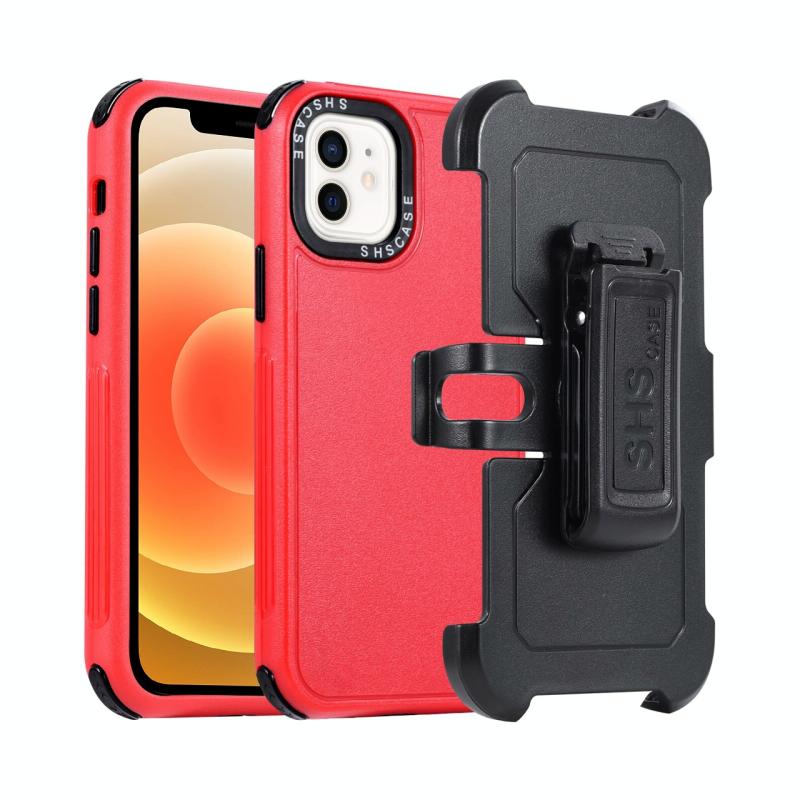 For iPhone 12 3 in 1 PC + TPU Sliding Sleeve Phone Case(Red+Black)