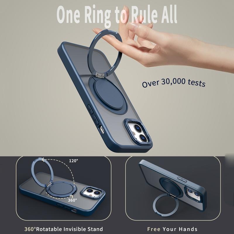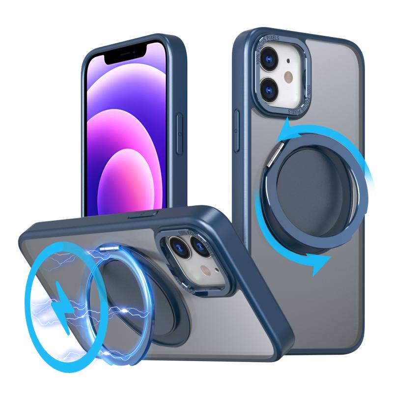 For iPhone 12 360-degree Rotating MagSafe Magnetic Holder Phone Case(Navy Blue)