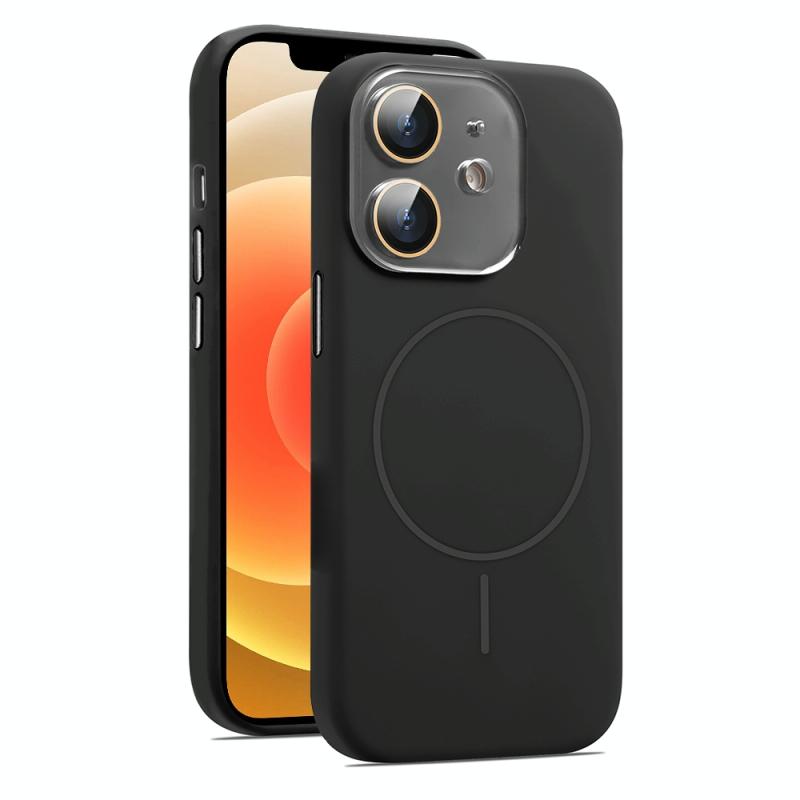 For iPhone 12 AG Fine Hole Liquid Silicone MagSafe Magnetic Phone Case(Black)
