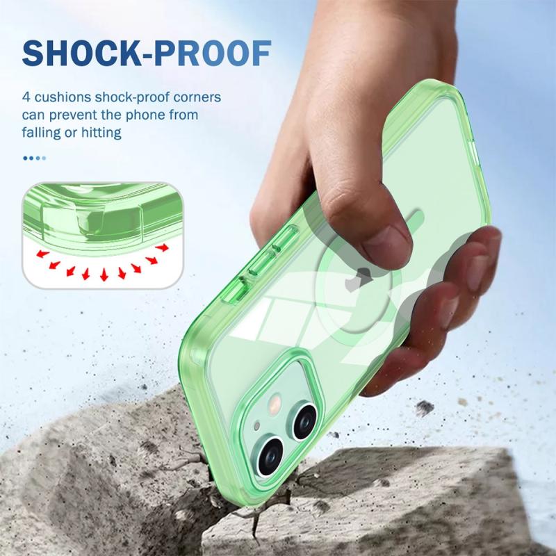For iPhone 12 Colorful MagSafe Magnetic PC Hybrid TPU Phone Case(Green)