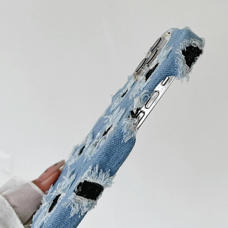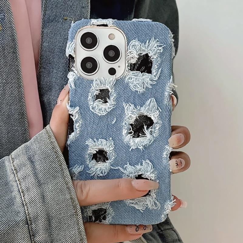 5. Adopt unique and fashionable ripped lace denim design to add an artistic touch to your phone.