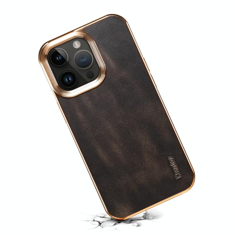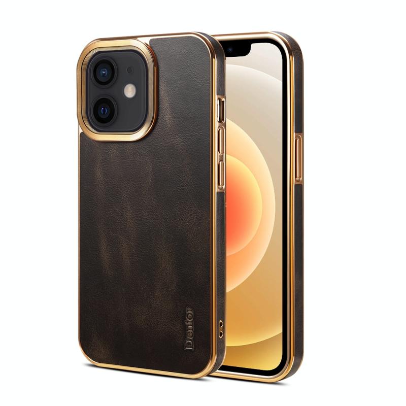 For iPhone 12 Denior Oil Wax Cowhide Plating Phone Case(Black) (Denior)