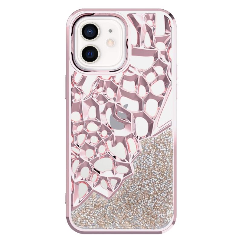 For iPhone 12 Diamond Style Hollow Heat Dissipation Electroplated TPU Phone Case(Pink)