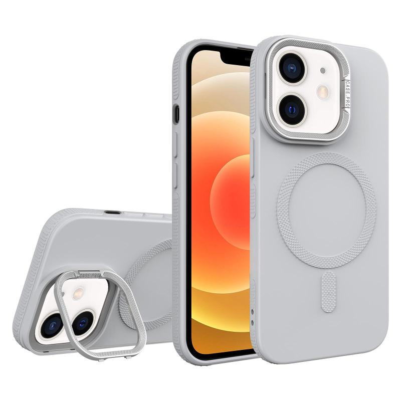 For iPhone 12 Diamond Texture Lens Holder Skin Feel MagSafe Phone Case(Grey)