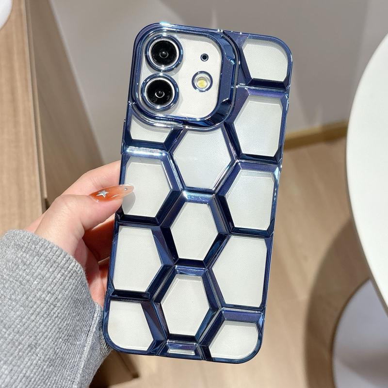 For iPhone 12 Electroplating Laser Engraving 3D Honeycomb Clear TPU Phone Case(Blue)