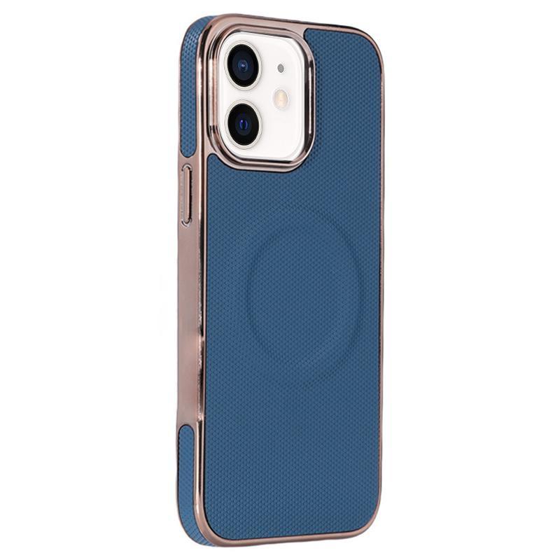 For iPhone 12 Electroplating Soft Side Sticker Leather MagSafe Phone Case(Dark Blue)