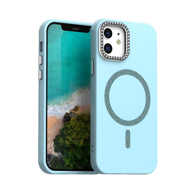 For iPhone 12 Glitter Rhinestones Series Magsafe PC Hybrid TPU Phone Case(Blue)