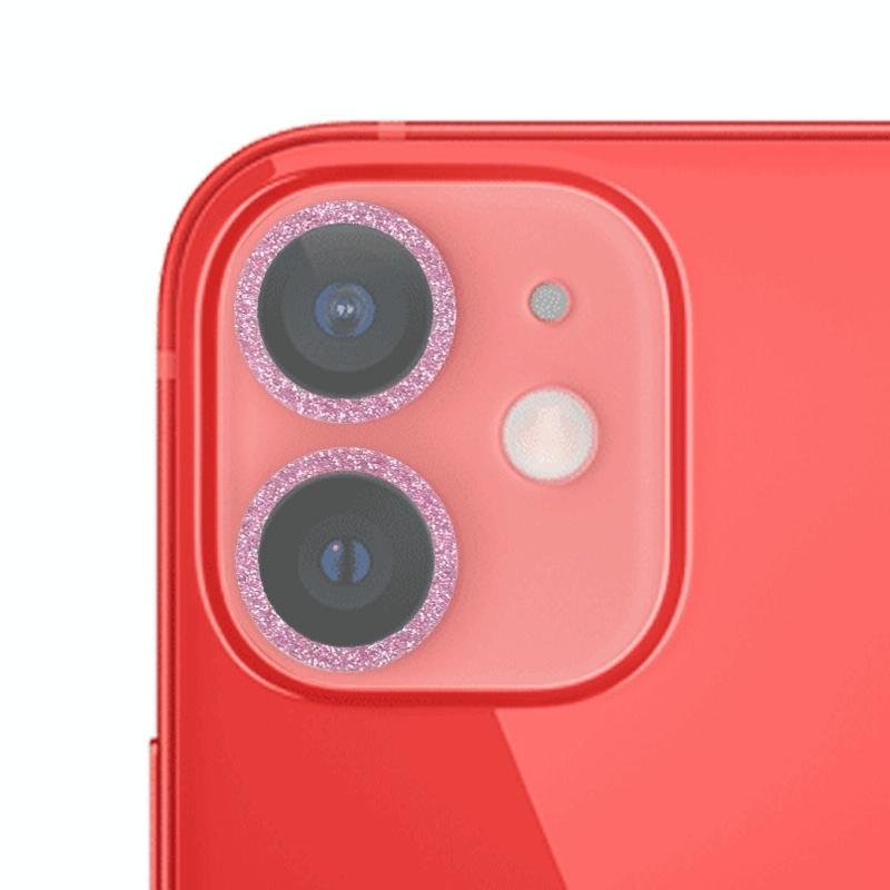For iPhone 12 Glitter Ring Tempered Glass Camera Lens Film(Pink)