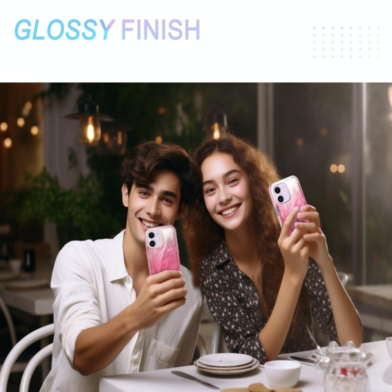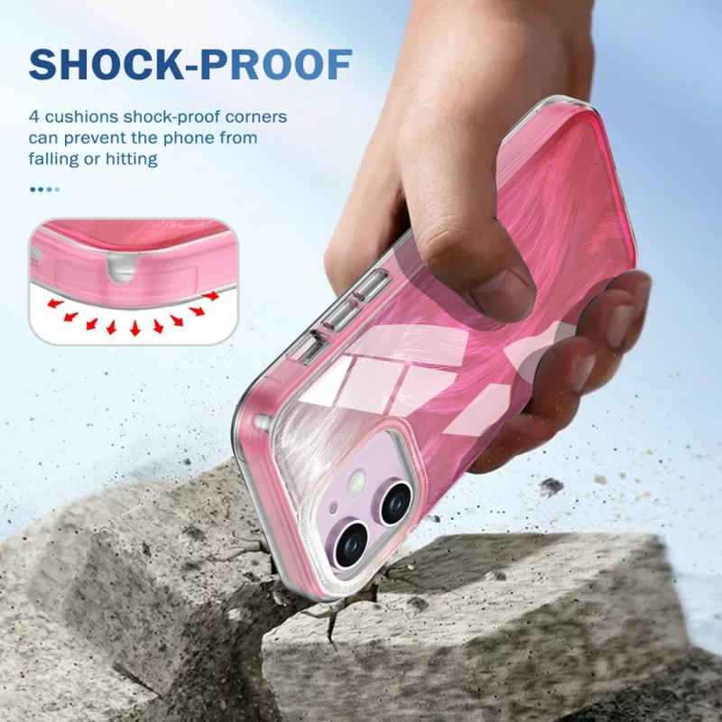 For iPhone 12 IMD Gradient Feather PC Hybrid TPU Phone Case(Rose Red)