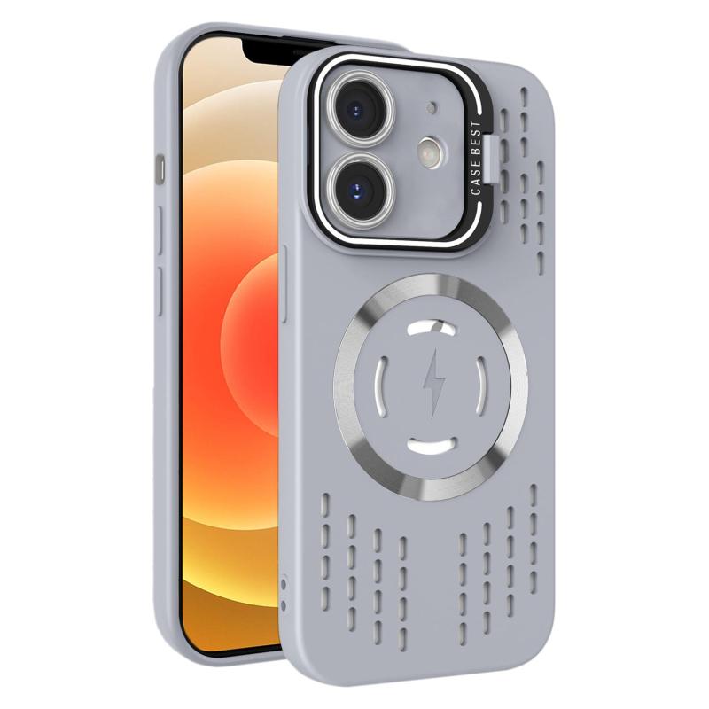 For iPhone 12 Lens Holder MagSafe Cooling Phone Case(Grey)