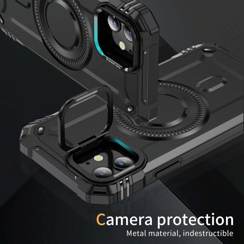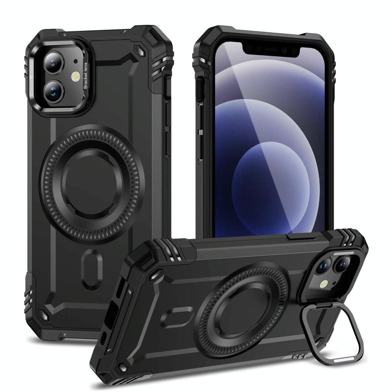 For iPhone 12 Lens Holder MagSafe Phone Case(Black)