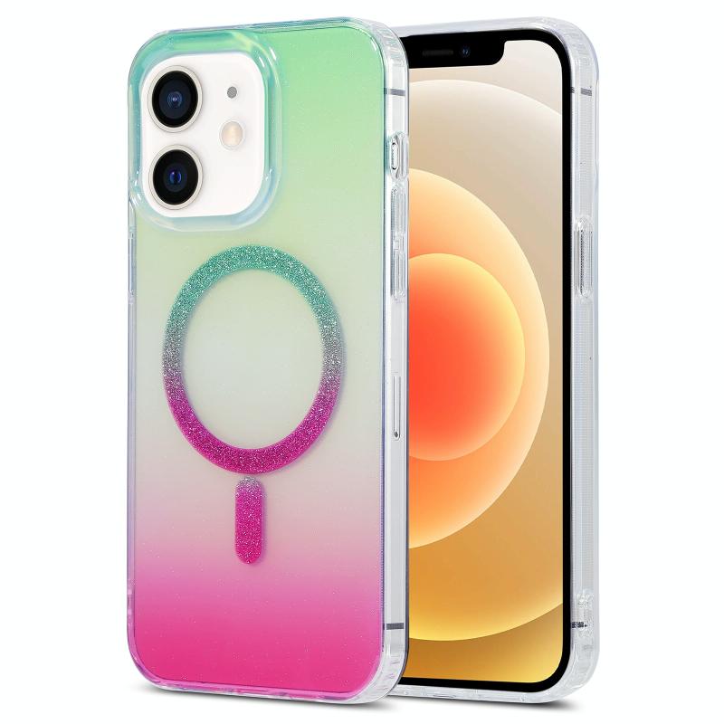 For iPhone 12 Magic Diamond Blu-ray MagSafe Phone Case(Green Rose Gradient)