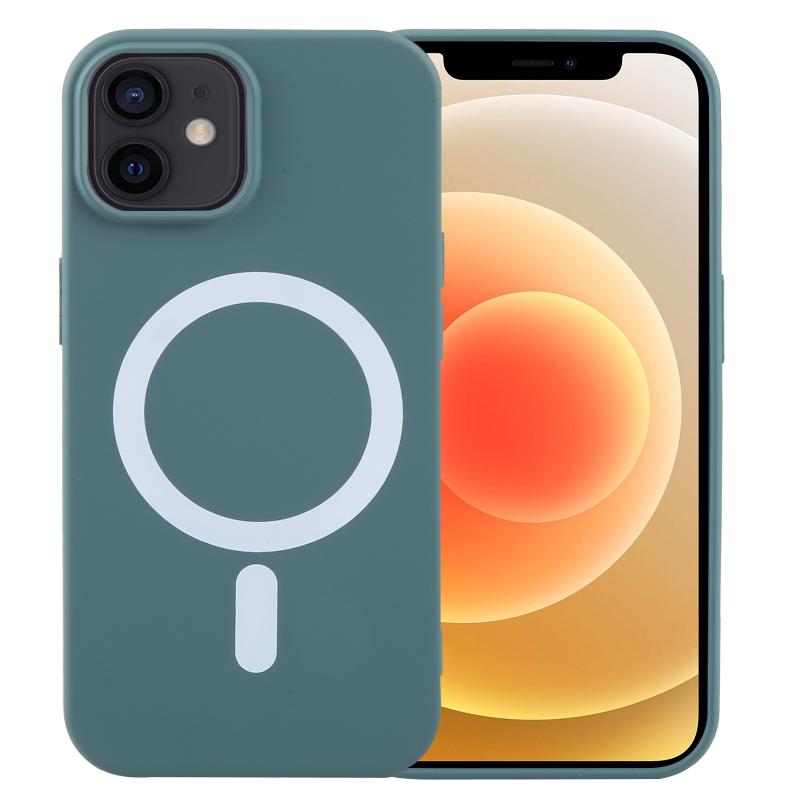For iPhone 12 MagSafe Liquid Silicone Phone Case(Deep Green)