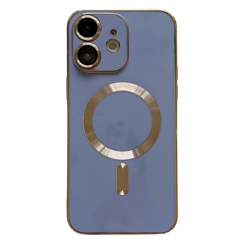 For iPhone 12 Magsafe Plating TPU Phone Case with Lens Film(Light Blue)