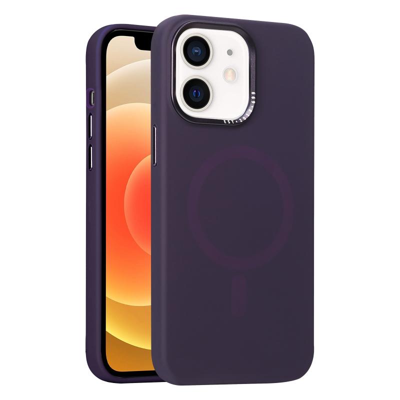 For iPhone 12 Metal Lens Frame Liquid Silicone MagSafe Phone Case(Deep Purple)
