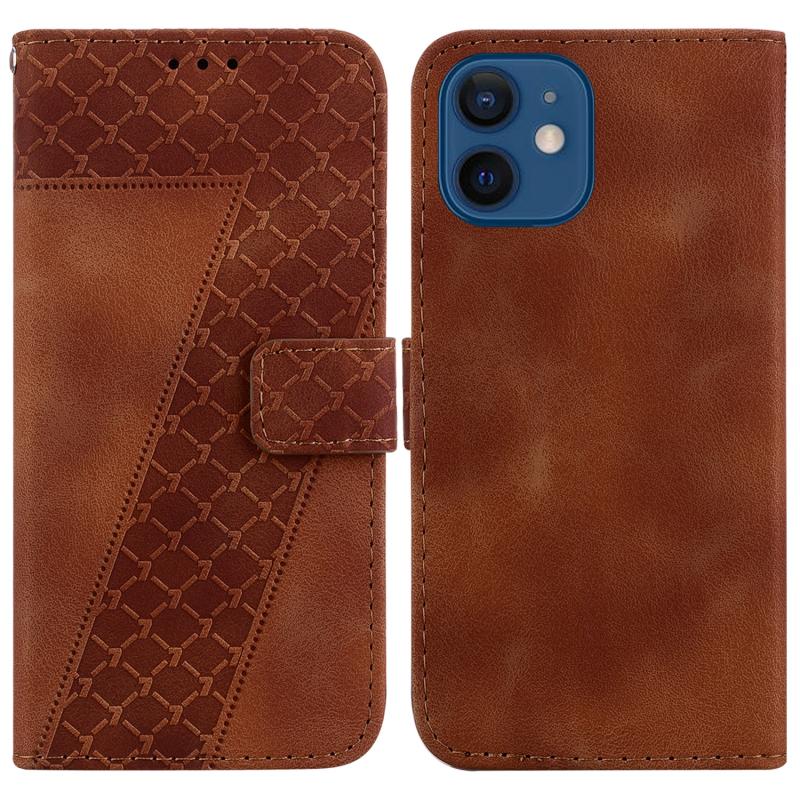 For iPhone 12 mini Seven-shaped Embossed Leather Phone Case(Brown)