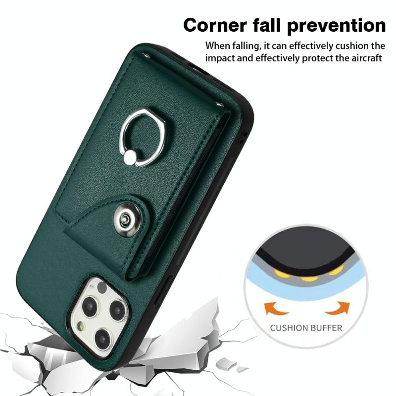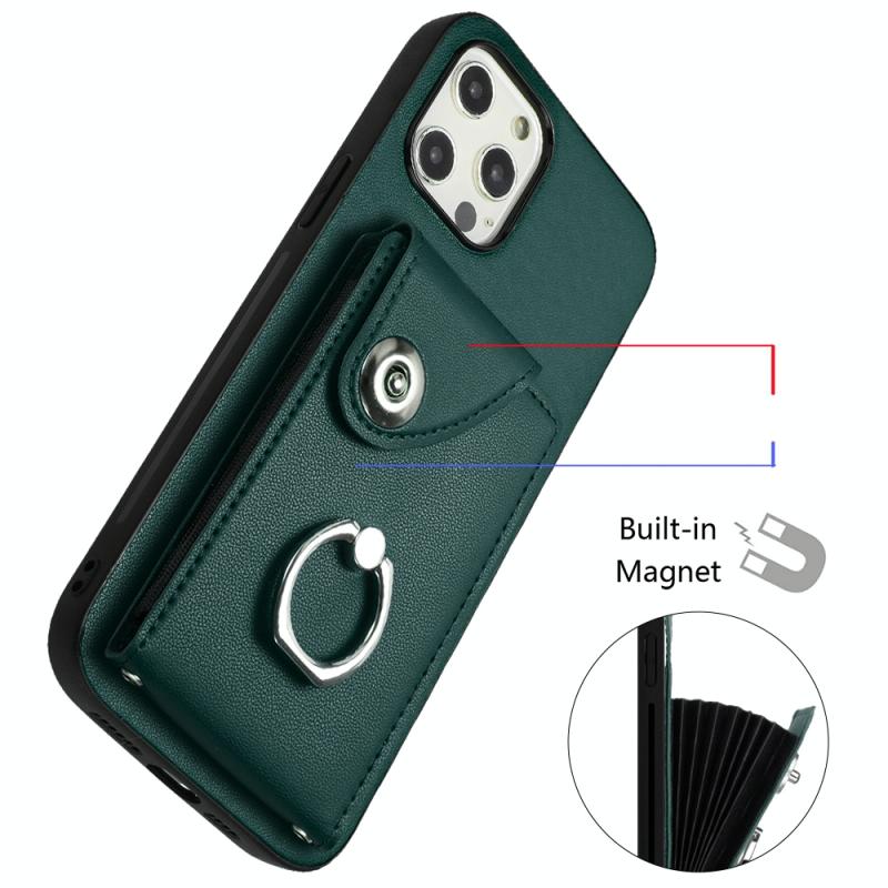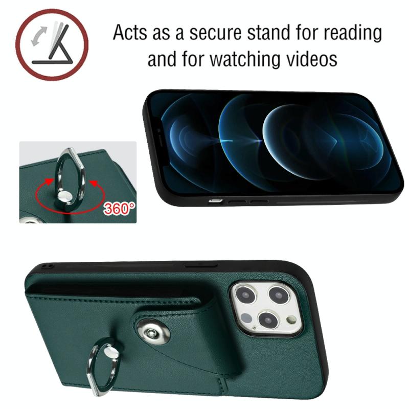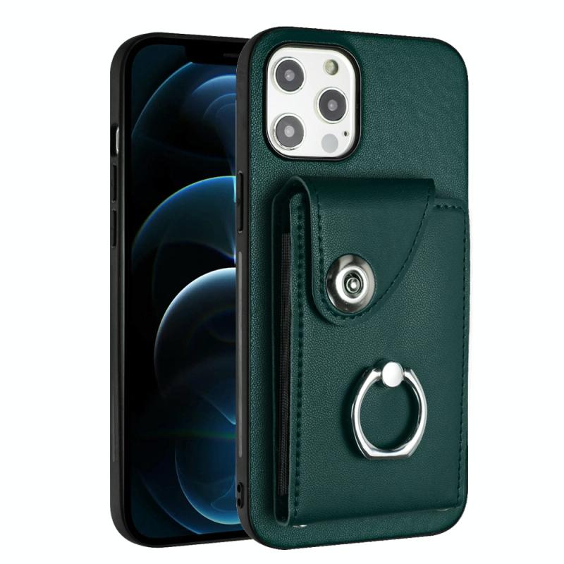 For iPhone 12 Organ Card Bag Ring Holder Phone Case(Green)