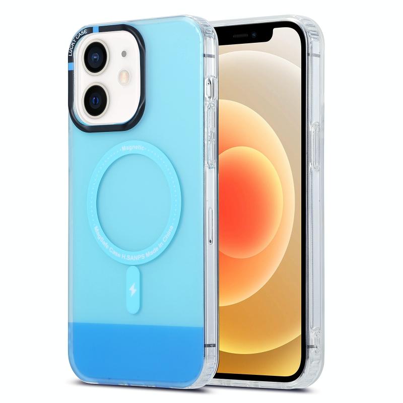 For iPhone 12 PC + TPU IMD MagSafe Magnetic Phone Case(Blue)