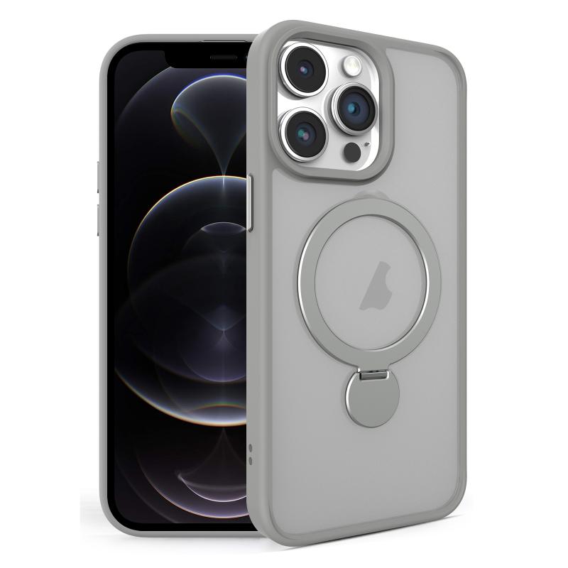 For iPhone 12 Pro 360 Degree Rotating MagSafe Magnetic Bracket Frosted Phone Case(Grey)