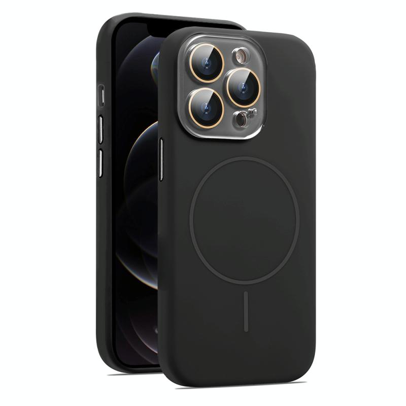 For iPhone 12 Pro AG Fine Hole Liquid Silicone MagSafe Magnetic Phone Case(Black)