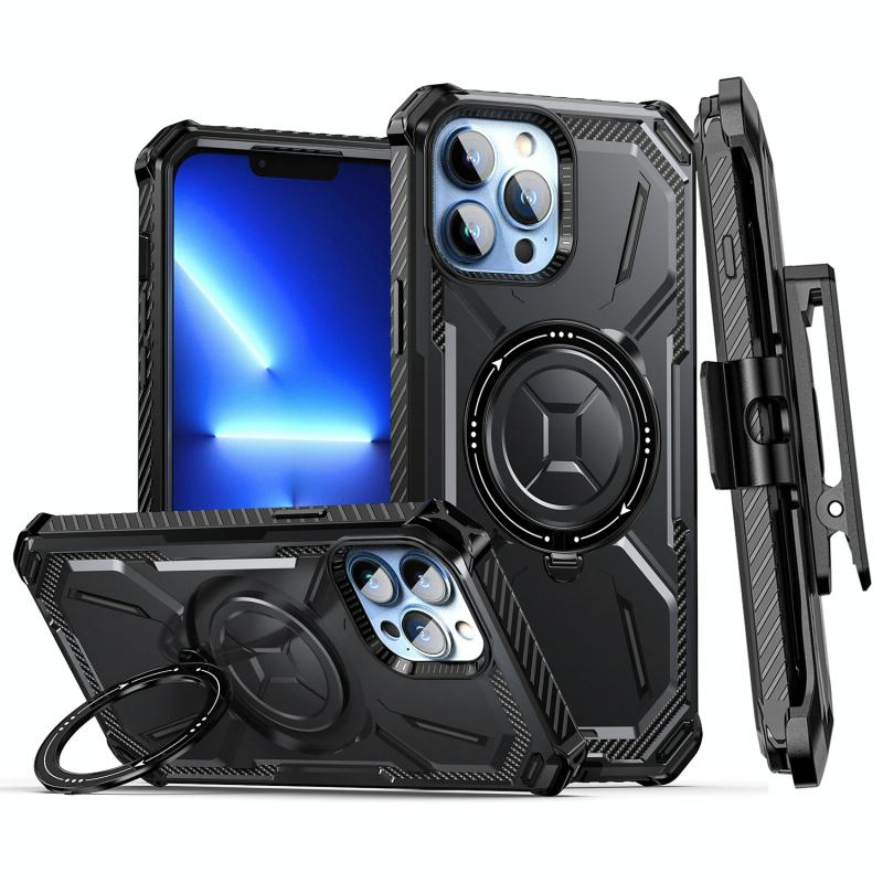 For iPhone 12 Pro Armor Series Holder Phone Case with Back Clip(Black)