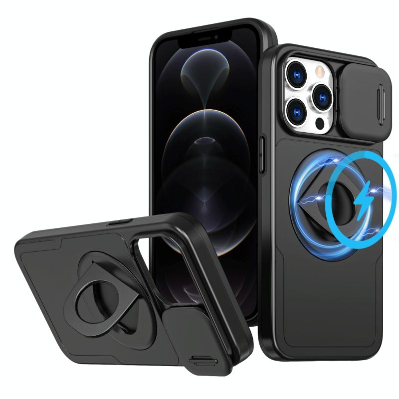 For iPhone 12 Pro Camshield MagSafe Ring Holder Armor Phone Case(Black)