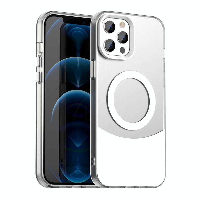 For iPhone 12 Pro Color Blocking Series MagSafe Magnetic PC Hybrid TPU Phone Case(White)