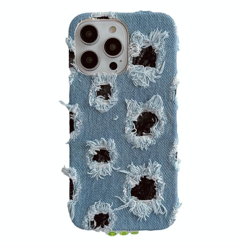 5. Adopt unique and fashionable ripped lace denim design to add an artistic touch to your phone.