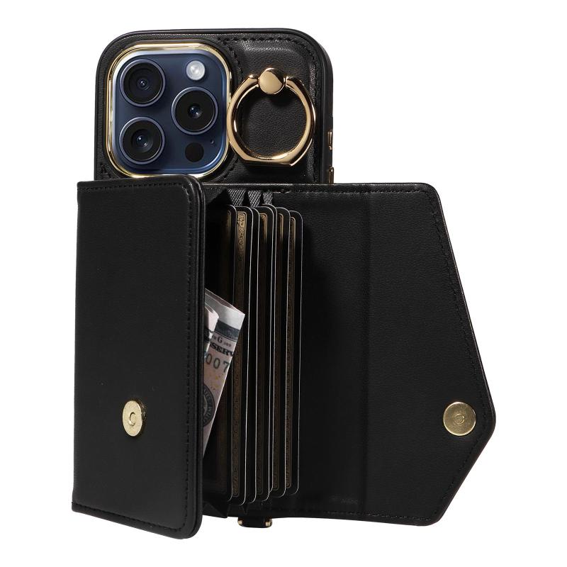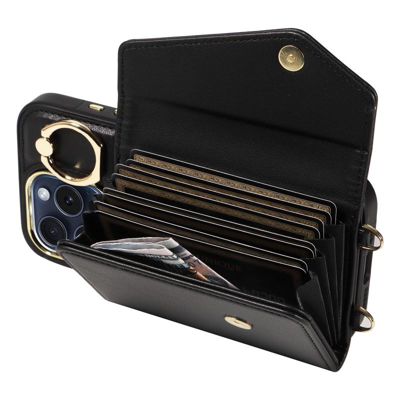For iPhone 12 Pro Diagonal Crossbody Ring Organ Wallet Leather Back Phone Case(Black)