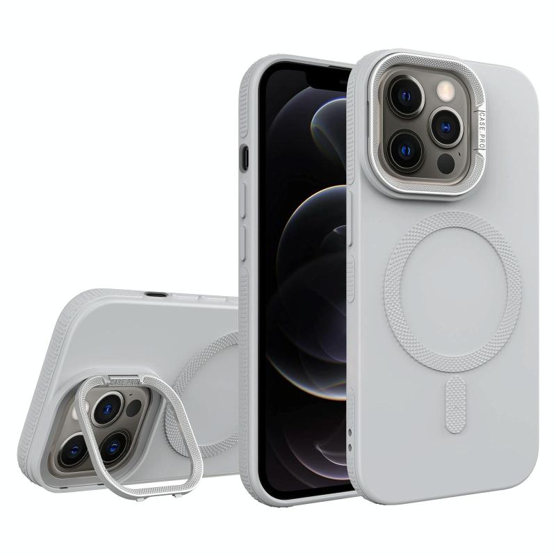 For iPhone 12 Pro Diamond Texture Lens Holder Skin Feel MagSafe Phone Case(Grey)