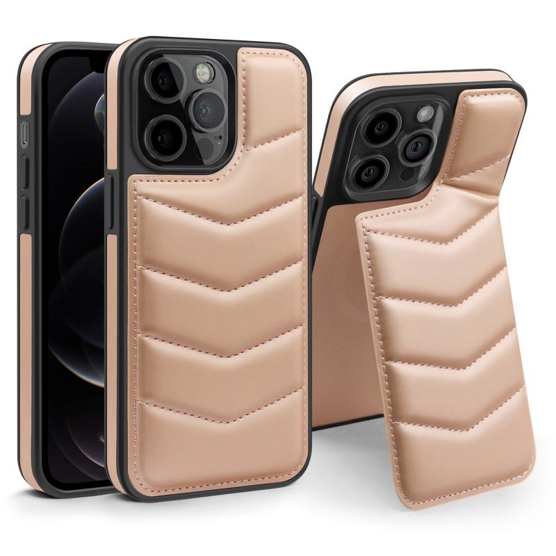 For iPhone 12 Pro Down Jacket Card Bag Holder MagSafe Phone Case(Rose Gold)