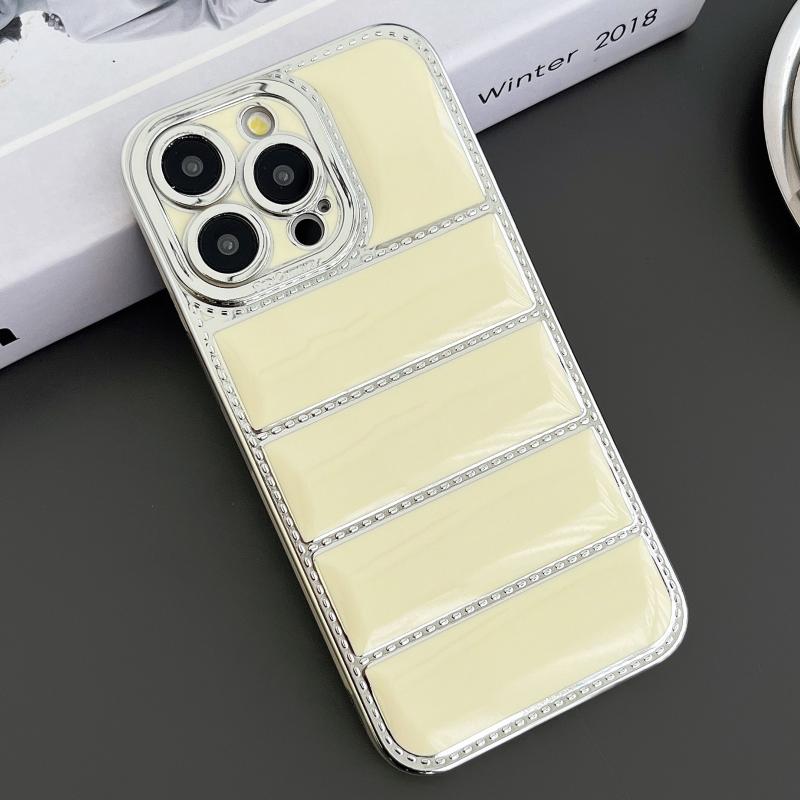 For iPhone 12 Pro Electroplated Silver Edge Eiderdown TPU Phone Case(Yellow)